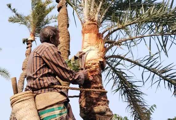 রাজশাহী থেকে মানিকগঞ্জের ঘিওর উপজেলার উভাজানী গ্রামে এসেছেন রাজ্জাক মোল্লা। তিনি বলেন, ‘এই এলাকায় আমি প্রায় ১০ বছর ধরে খেজুর গাছ কেটে রস সংগ্রহ করে আসছি। এ বছরও ৭০টির বেশি খেজুর গাছের তোলার (পরিচর্যা) কাজ শুরু করেছি। আমি নিজেই সেই রস দিয়ে গুড় তৈরি করি। প্রতি শীতেই এ কাজ থেকে ভালো আয় হয়।’