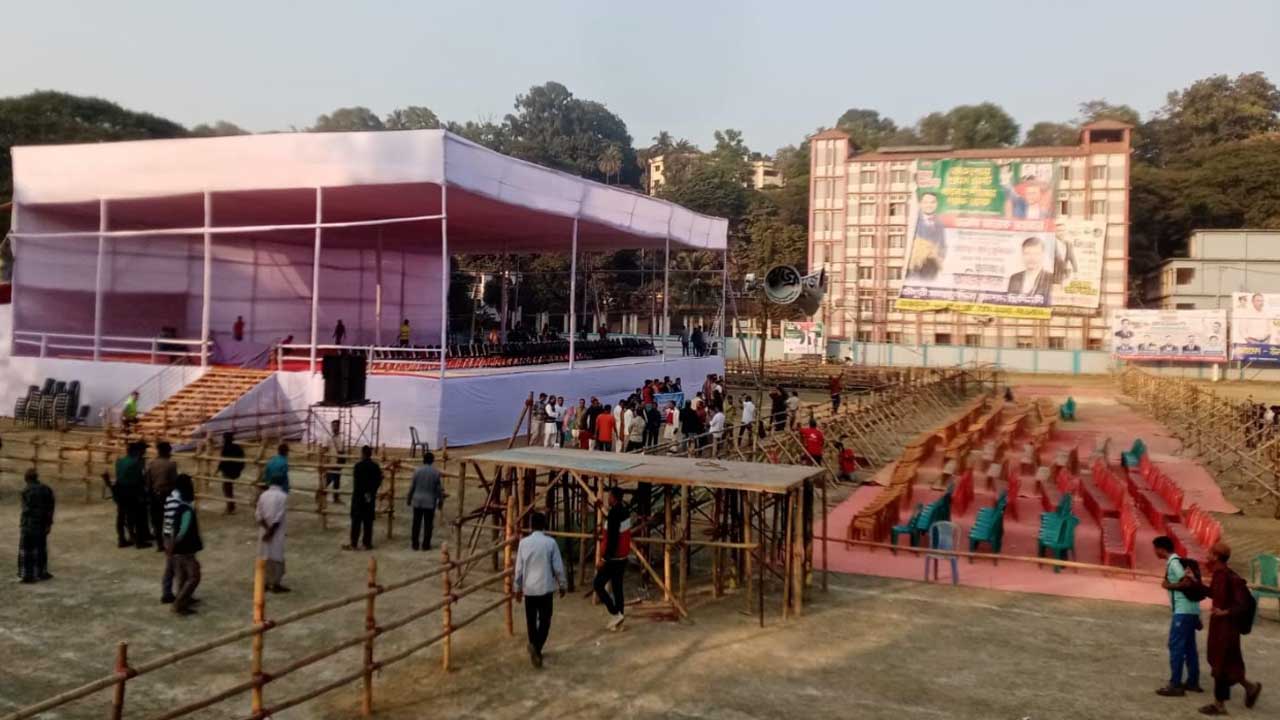 এদিকে, মহাসমাবেশ উপলক্ষ্যে কয়েকদিন ধরে পলোগ্রাউন্ড মাঠে চলছে প্রস্তুতি। মাঠের পশ্চিম পাশে প্রায় দুই হাজারের বেশি বাঁশের খুঁটি ব্যবহার করে নির্মাণ করা হয়েছে ১০০ ফুট দৈর্ঘ্য ও ৬০ ফুট প্রস্থের একটি বিশাল মঞ্চ। আয়োজকদের দাবি, এই মঞ্চে একসঙ্গে প্রায় দেড় হাজার মানুষ বসতে পারবেন। মঞ্চের সামনে রাখা হচ্ছে আরও পাঁচ হাজারের বেশি চেয়ার।